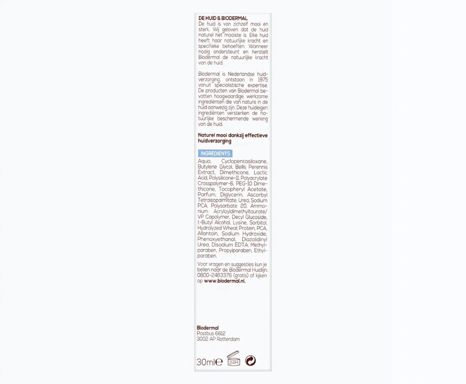 Voor optimaal resultaat, overdag gebruiken in combinatie met Biodermal Pigmentcrème SPF 15.